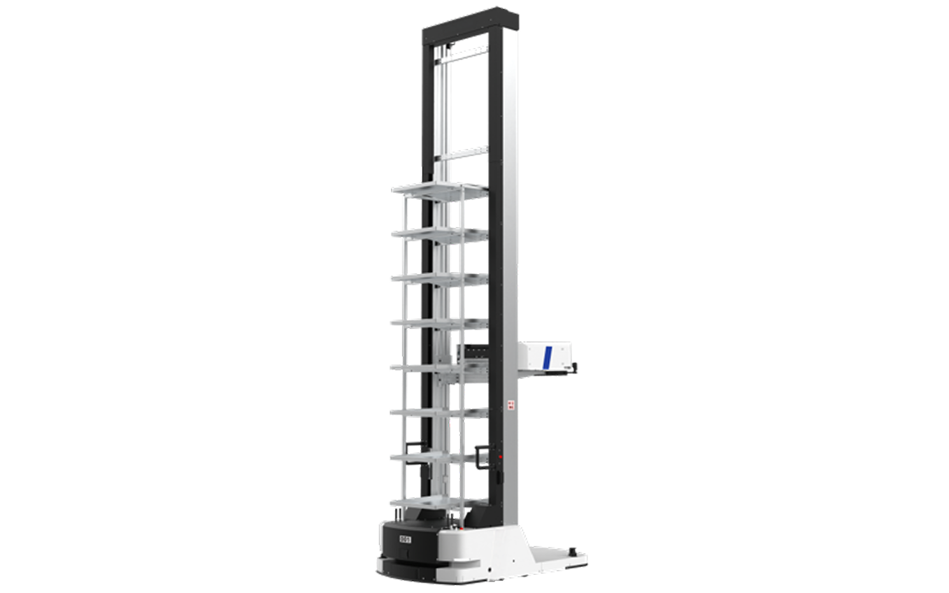 伸縮升降料箱機器人專為 12 米高的倉庫打造。該機器人靈活應對多層存儲需求,有效提升倉庫的垂直空間利用率,最大化空間效能。